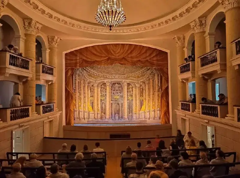 Также мы посетим великолепный театр Гонзаго. Главная роскошь театра – декорации, которые заставляли публику забыть о самом спектакле и любоваться великолепными полотнами. Художники создали 12 смен декораций приусадебного театра Юсупова, они сохранились до нашего времени.